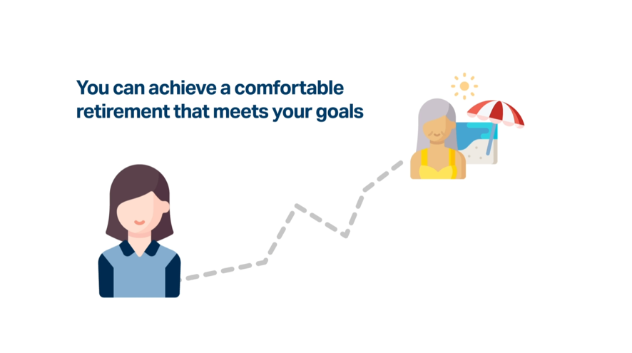 | The younger woman comes back on screen and the dotted line reappears with the older woman at the end, in retirement | With a flexible approach and a little help, you can achieve a comfortable retirement that meets your goals. |
