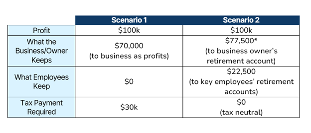For business owners with end-of-year profits, the dollars that would have been lost to taxes can be used to boost an owner’s wealth and help reward and retain key employees.