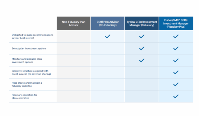 If managing your 401(k) plan feels overwhelming, a 3(16) fiduciary can be a game-changer. Just remember: not all fiduciaries are created equal. Do your homework, ask the right questions, and choose a partner who fits your needs. Click here to can learn more Fisher\SMB’s Fiduciary Services. 1